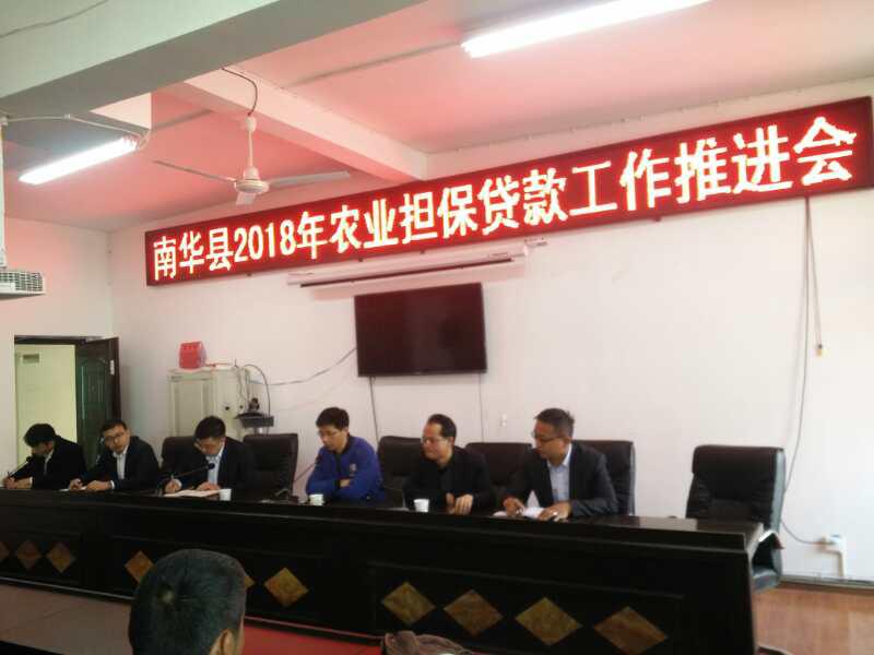 為準確對接客戶,加快業(yè)務落地,2018年3月27日,公司楚雄辦事處聯(lián)合楚雄州南華縣農(nóng)業(yè)局組織召開南華縣2018年農(nóng)業(yè)擔保貸款工作推進會。南華縣70戶養(yǎng)殖大戶、南華縣農(nóng)商行、郵儲銀行南華縣龍城支行、農(nóng)行南華縣支行、南華興福村鎮(zhèn)銀行主要負責同志受邀參加會議。