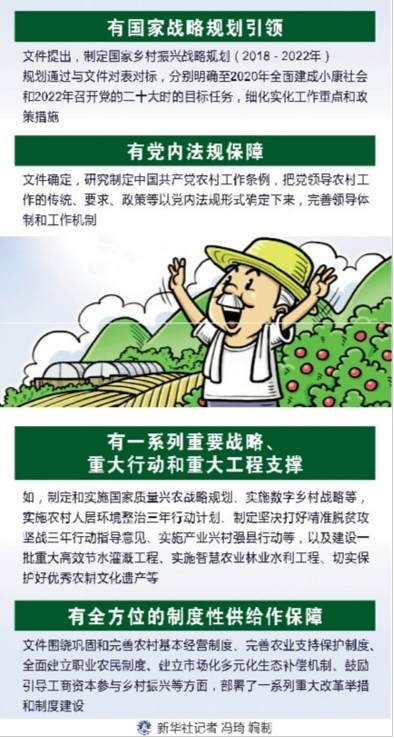 ——有黨內(nèi)法規(guī)保障。文件確定,研究制定中國共產(chǎn)黨農(nóng)村工作條例,把黨領(lǐng)導(dǎo)農(nóng)村工作的傳統(tǒng)、要求、政策等以黨內(nèi)法規(guī)形式確定下來,完善領(lǐng)導(dǎo)體制和工作機制。