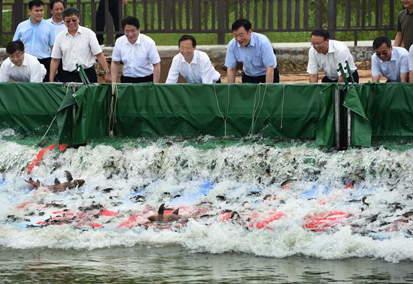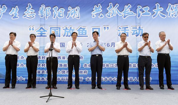 6月7日,作為“全國放魚日”主會場活動,農(nóng)業(yè)農(nóng)村部會同江西省人民政府在“長江之腎”鄱陽湖聯(lián)合舉辦水生生物增殖放流活動,農(nóng)業(yè)農(nóng)村部部長韓長賦,江西省委書記、省長劉奇等出席活動?;顒悠陂g,共向鄱陽湖放流四大家魚、河蟹和胭脂魚等水生生物苗種230余萬尾,還首次采用無線電遙測技術(shù),對鄱陽湖長江江豚的晝夜活動規(guī)律開展研究,為更好地保護和拯救長江江豚提供科學(xué)支撐。