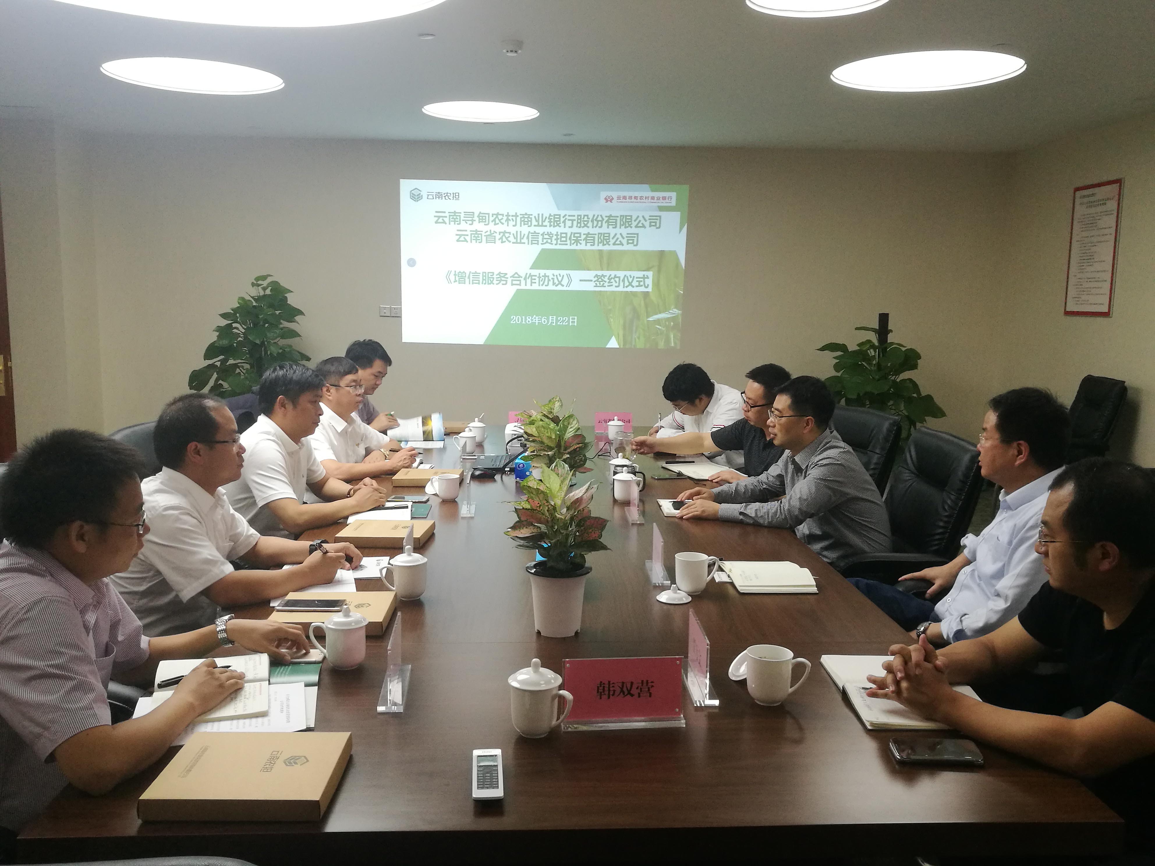 2018年6月22日,云南省農(nóng)業(yè)信貸擔(dān)保有限公司與云南尋甸農(nóng)村商業(yè)銀行股份有限公司在昆明召開銀擔(dān)合作座談會(huì),并簽署《尋甸縣新型農(nóng)業(yè)經(jīng)營(yíng)主體增信服務(wù)合作協(xié)議》。省農(nóng)業(yè)信貸擔(dān)保有限公司董事長(zhǎng)郭影、總經(jīng)理杜開波、副總經(jīng)理廖寅皓,尋甸農(nóng)商行董事長(zhǎng)虞燕林、行長(zhǎng)李葉忠、副行長(zhǎng)范彪等領(lǐng)導(dǎo)參加座談。