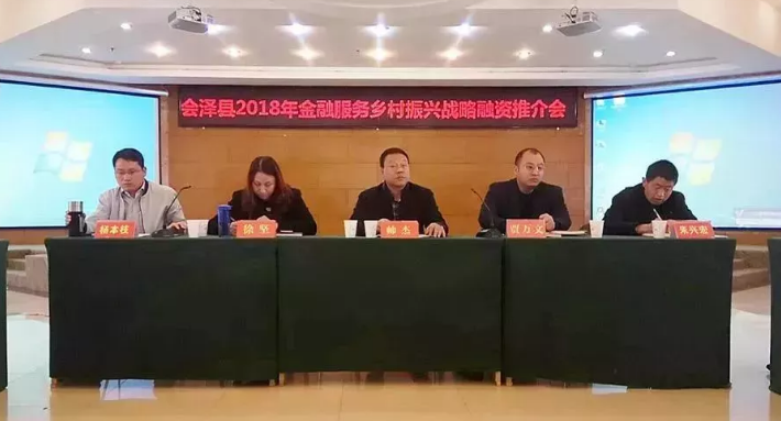 曲靖辦事處負責人賈萬文攜曲靖辦事處全體員工代表云南農(nóng)擔公司與會澤縣政府、人民銀行、郵儲銀行等金融機構,共同出席會澤縣2018年金融服務鄉(xiāng)村振興戰(zhàn)略融資推介會,并由曲靖辦事處王景同志向到會的各農(nóng)業(yè)大戶詳細講解農(nóng)擔業(yè)務。