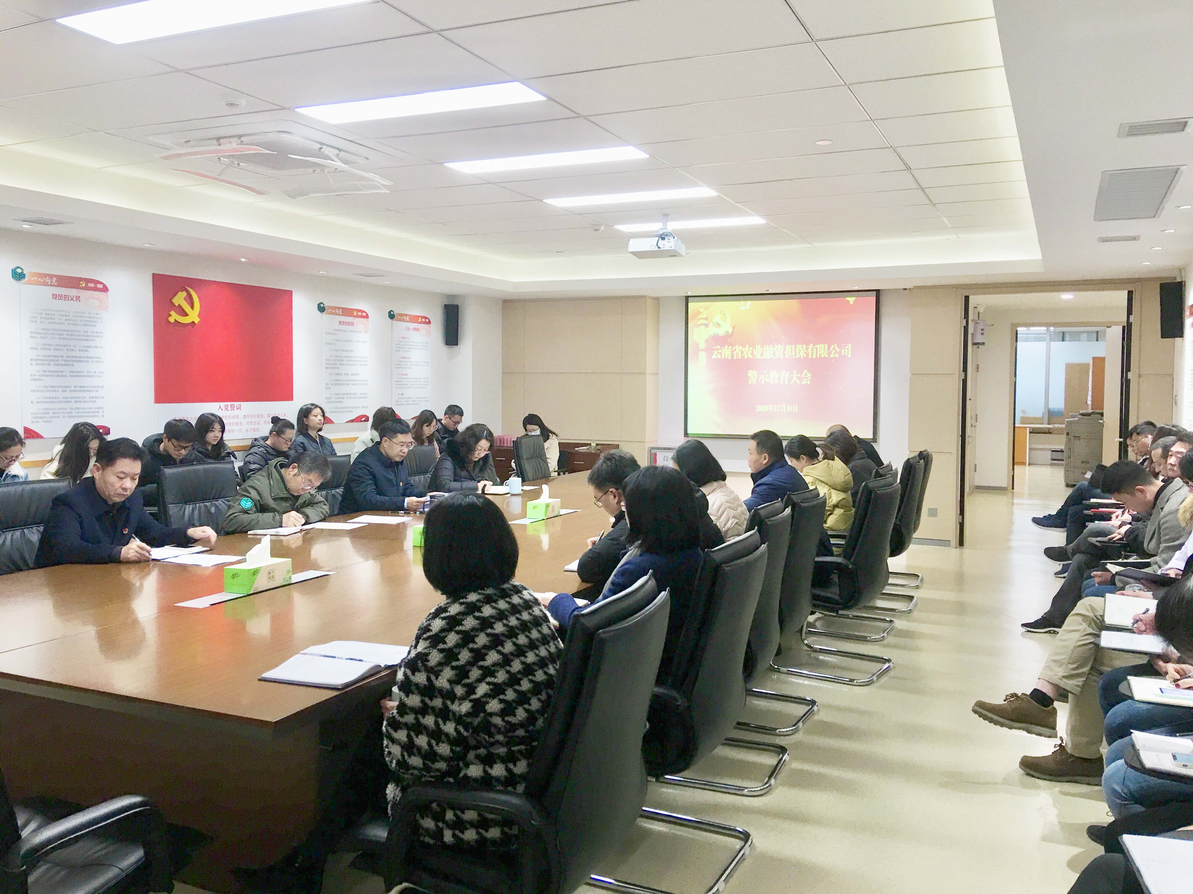 為認(rèn)真落實(shí)中央“八項(xiàng)規(guī)定”精神,加強(qiáng)元旦、春節(jié)兩節(jié)期間紀(jì)律作風(fēng)建設(shè),12月31日,云南省農(nóng)業(yè)融資擔(dān)保有限公司召開紀(jì)律作風(fēng)建設(shè)警示教育大會。公司黨總支部書記、董事長郭影作警示教育宣講,公司在家全體員工參加了大會。