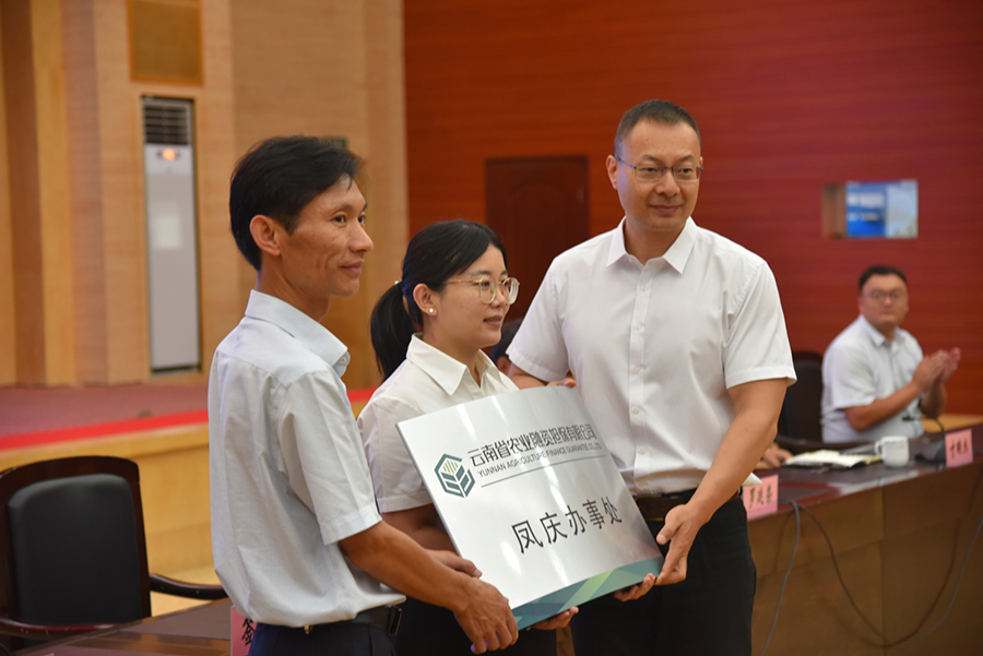 為進(jìn)一步助推鳳慶縣農(nóng)業(yè)產(chǎn)業(yè)振興,發(fā)揮農(nóng)擔(dān)政策性擔(dān)保作用,9月15日,云南省農(nóng)擔(dān)公司鳳慶辦事處授牌儀式在鳳慶縣會(huì)展中心報(bào)告廳順利舉行。公司總經(jīng)理李世偉、戰(zhàn)略發(fā)展部經(jīng)理蔡菲、業(yè)務(wù)發(fā)展部副經(jīng)理寸明杰,臨滄市人民政府金融辦公室主任羅廷榮、鳳慶縣委常委、縣人民政府常務(wù)副縣長陳正華、臨滄市農(nóng)業(yè)農(nóng)村局副局長翟國軍等領(lǐng)導(dǎo)出席會(huì)議。鳳慶縣各政府部門及鳳慶縣13個(gè)鄉(xiāng)(鎮(zhèn))人民政府分管農(nóng)業(yè)農(nóng)村工作的領(lǐng)導(dǎo),縣人行及各金融機(jī)構(gòu)主要負(fù)責(zé)人參加會(huì)議。