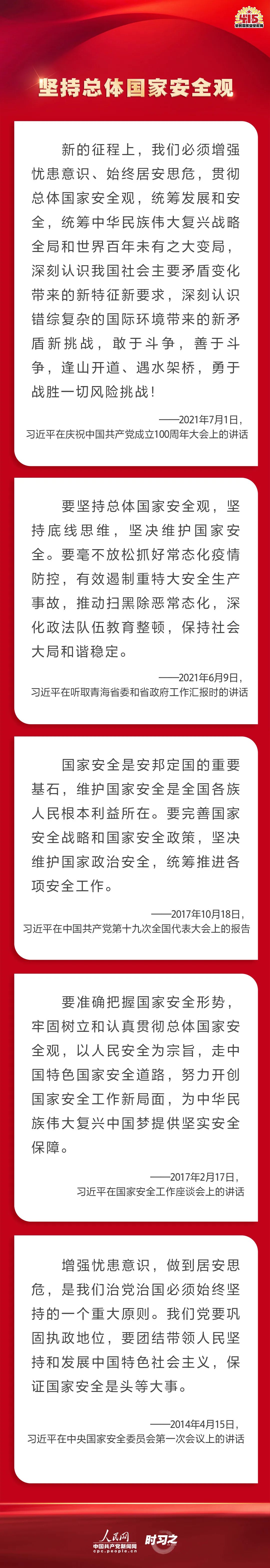 備豫不虞,為國常道。實現(xiàn)中華民族偉大復(fù)興的中國夢,保證人民安居樂業(yè),國家安全是頭等大事。在第七個全民國家安全教育日到來之際,一起回顧習(xí)近平總書記在不同場合就維護、筑牢國家安全觀發(fā)表的一系列重要論述,增強維護國家安全的責(zé)任感、使命感、緊迫感。