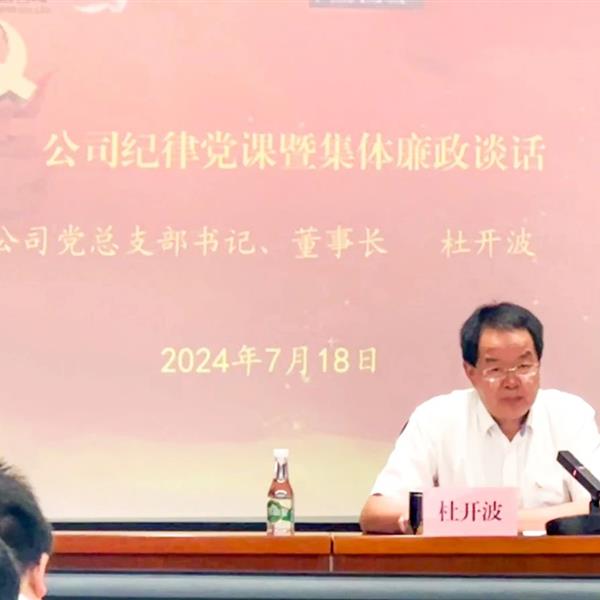 7月18日,公司以“現(xiàn)場+視頻”方式召開全體職工會議,公司黨總支部書記、董事長杜開波同志為全體職工講授黨紀學習教育紀律黨課并進行集體廉政談話。