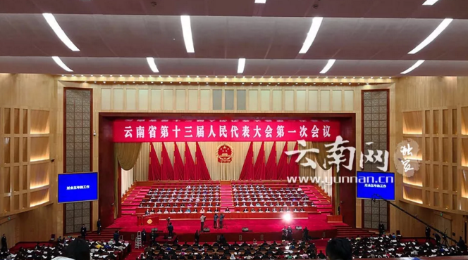 1月25日上午9時,云南省第十三屆人民代表大會第一次會議在云南海埂會堂隆重開幕。