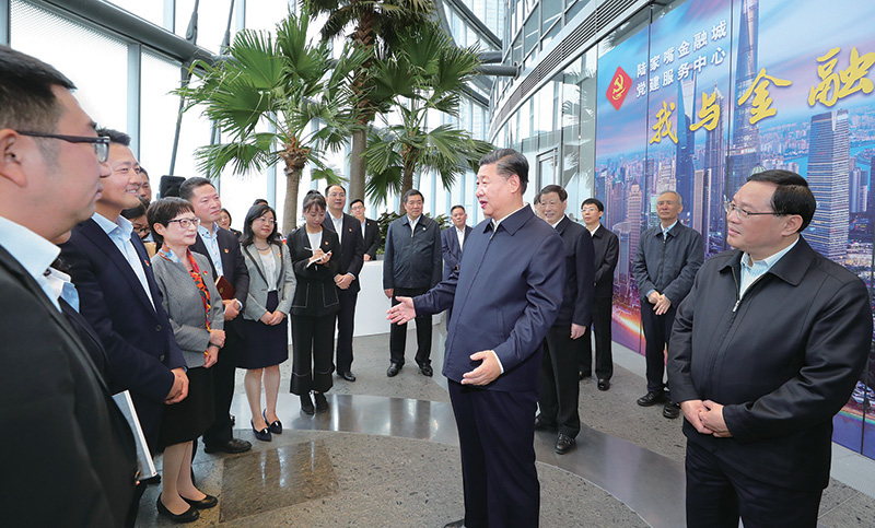 2018年11月6日至7日,中共中央總書記、國(guó)家主席、中央軍委主席習(xí)近平在上海考察。這是6日上午,習(xí)近平在上海中心大廈22層的陸家嘴金融城黨建服務(wù)中心,同正在聯(lián)合開展主題黨日活動(dòng)的企業(yè)黨員親切交談。