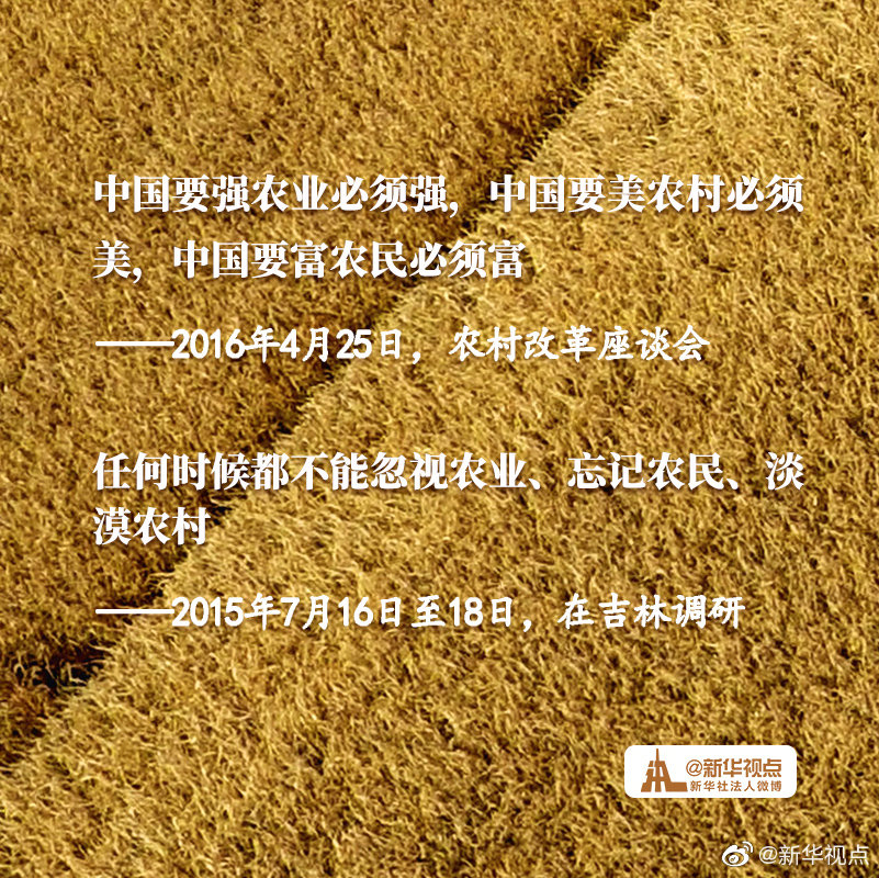 “農(nóng)業(yè)農(nóng)村工作,說一千、道一萬,增加農(nóng)民收入是關(guān)鍵”“中國要強農(nóng)業(yè)必須強,中國要美農(nóng)村必須美,中國要富農(nóng)民必須富”……黨的十八大以來,以習(xí)近平同志為核心的黨中央關(guān)注農(nóng)業(yè)、關(guān)心農(nóng)村、關(guān)愛農(nóng)民,一起來學(xué)習(xí)總書記的金句?